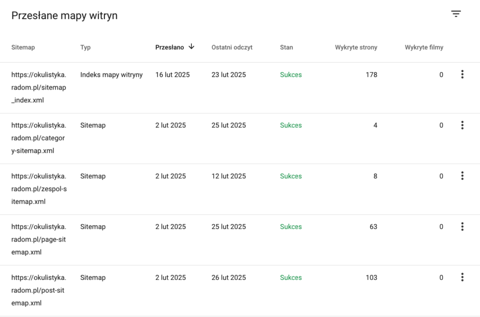 - Aktualizacja sitemap i ich przesłanie do Google Search Console.